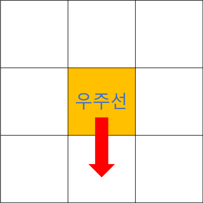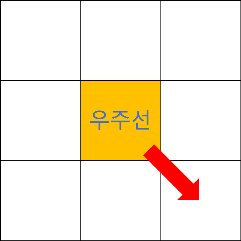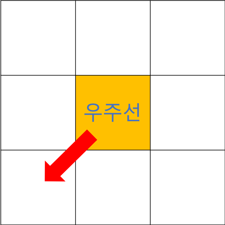 2. 우주선은 전에 움직인 방향으로 움직일 수 없다. 즉, 같은 방향으로 두번 연속으로 움직일 수 없다.