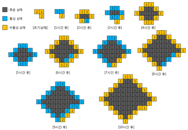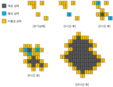 세포가 죽더라도 소멸되는 것은 아니고 죽은 상태로 해당 그리드 셀을 차지하게 된다.