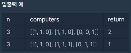 - 각 컴퓨터는 0부터 n-1인 정수로 표현합니다.