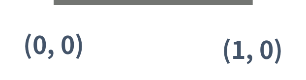 0세대 드래곤 커브는 아래 그림과 같은 길이가 1인 선분이다. 아래 그림은 (0, 0)에서 시작하고, 시작 방향은 오른쪽인 0세대 드래곤 커브이다.