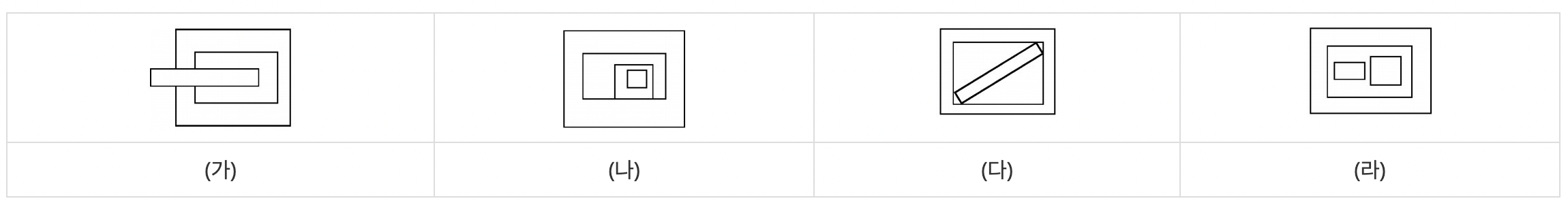 예를 들어, 아래의 그림 중에서 위의 두 조건을 모두 만족하는 경우는 (나)뿐이다.