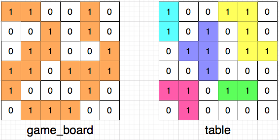 - 즉, 테이블은 game_board와 같은 크기의 정사각 격자 모양입니다.