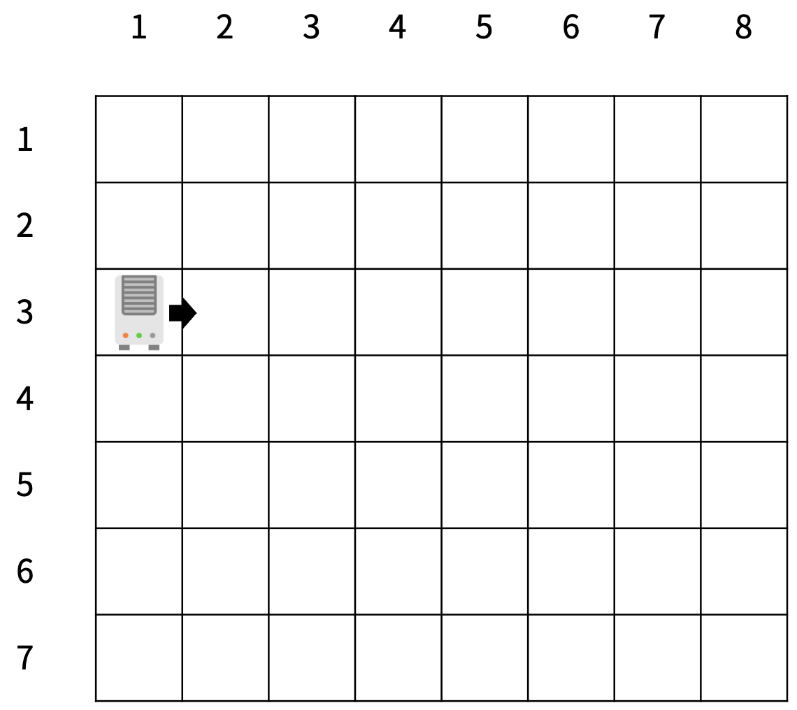 - 1 ≤ x ≤ R, 1 ≤ y < C (t = 1)