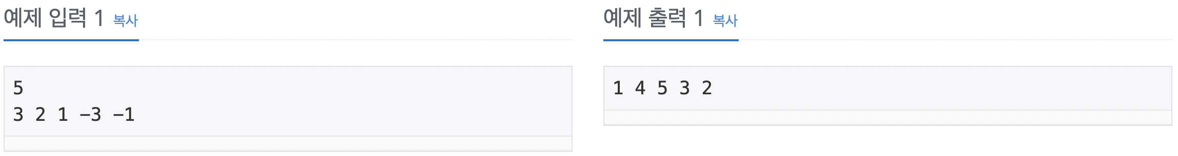 1번부터 N번까지 N개의 풍선이 원형으로 놓여 있고. i번 풍선의 오른쪽에는 i+1번 풍선이 있고, 왼쪽에는 i-1번 풍선이 있다. 단, 1번 풍선의 왼쪽에 N번 풍선이 있고, N번 풍선의 오른쪽에 1번 풍선이 있다. 각 풍선 안에는 종이가 하나 들어있고, 종이에는 -N보다 크거나 같고, N보다 작거나 같은 정수가 하나 적혀있다. 이 풍선들을 다음과 같은 규칙으로 터뜨린다.