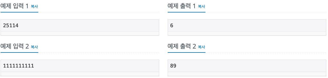 11025114의 경우 6을 출력해야 한다.