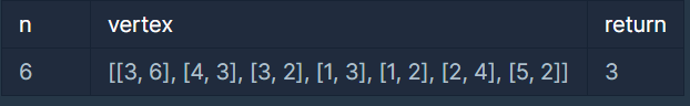 6 [[3, 6], [4, 3], [3, 2], [1, 3], [1, 2], [2, 4], [5, 2]] 3