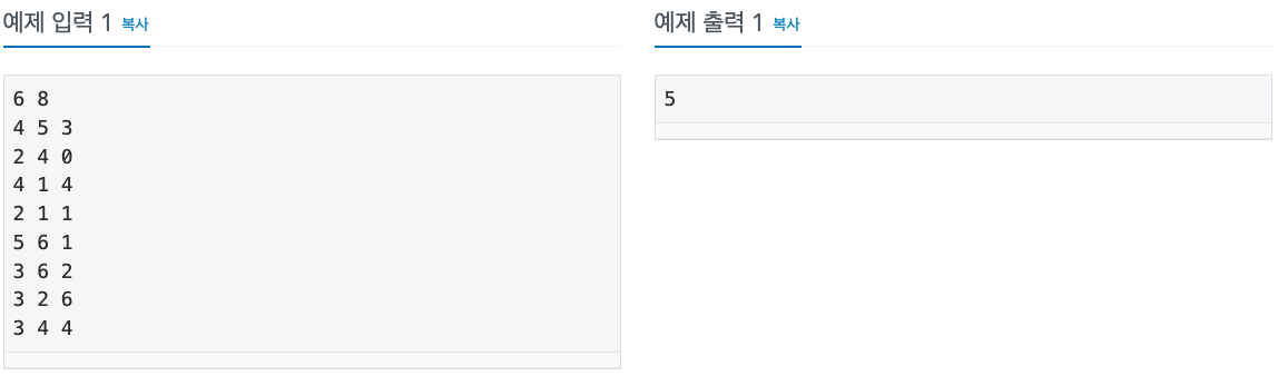 첫째 줄에 N과 M이 공백을 사이에 두고 주어집니다.