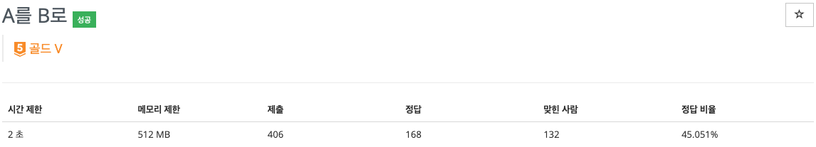 첫째 줄에 A를 B로 바꾸는 연산 횟수의 최솟값을 출력한다. A를 B로 바꿀 수 없을 때는 -1을 출력한다.