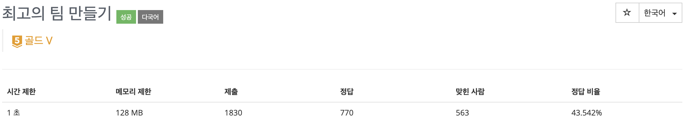 꿍 협회가 만들 수 있는 팀 중 가장 큰 능력치를 갖는 팀의 능력치를 출력한다.