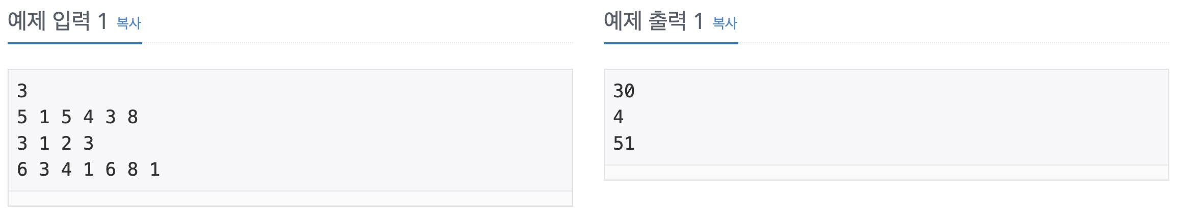 먼저 테스트케이스의 수 T가 주어지고 이어져서 각각의 줄에 N과 A(i)의 정보가 차례대로 주어진다.