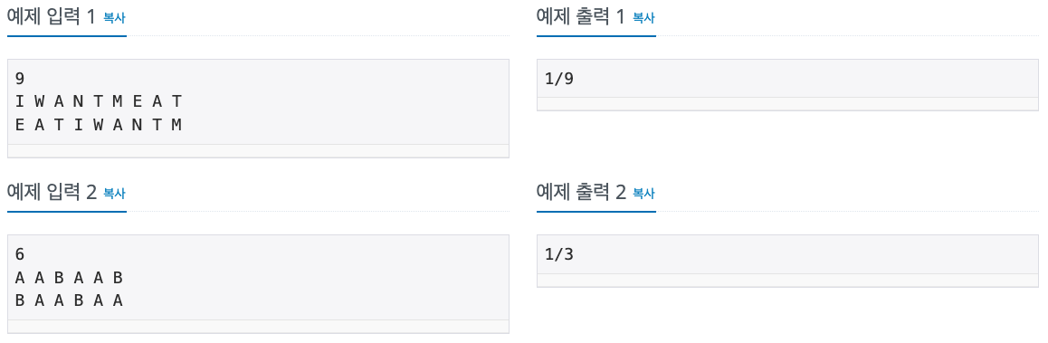 문제 출처 : https://www.acmicpc.net/problem/11585