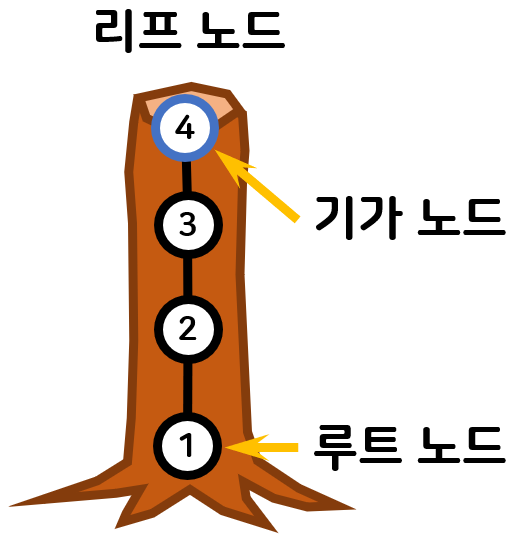 - 트리의 기둥은 루트 노드에서부터 기가 노드까지다. 위 그림에서 기둥은 1−2−3−4 이다.