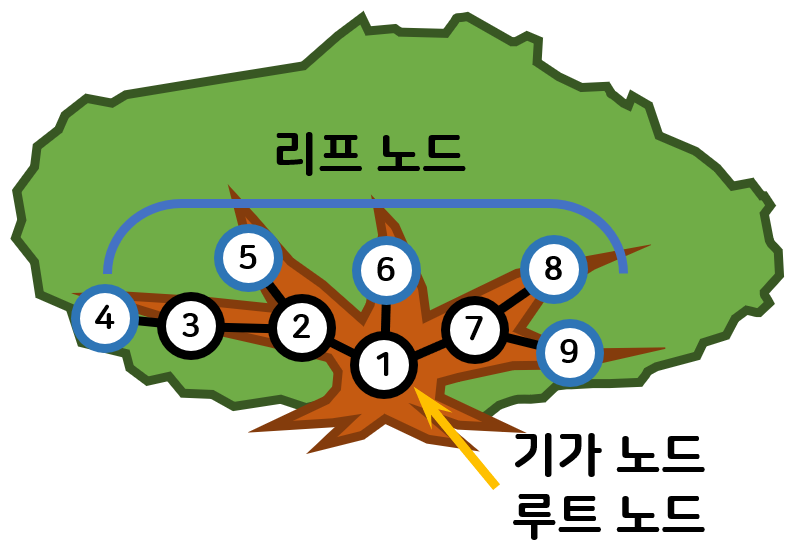 단, 위 그림과 같이 리프 노드가 단 1개인 경우 리프 노드가 동시에 기가 노드가 된다.