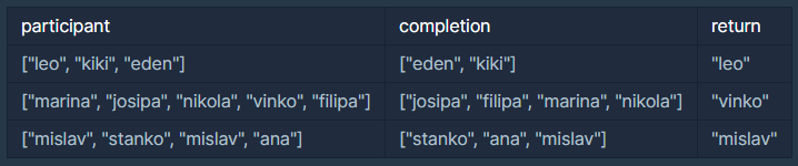 "mislav"는 참여자 명단에는 두 명이 있지만, 완주자 명단에는 한 명밖에 없기 때문에 한명은 완주하지 못했습니다.