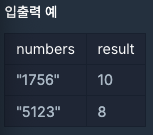 - numbers는 아라비아 숫자로만 이루어진 문자열입니다.