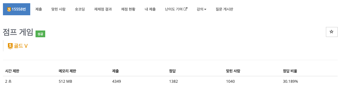 N번 칸보다 더 큰 칸으로 이동하는 경우에는 게임을 클리어한 것이다.