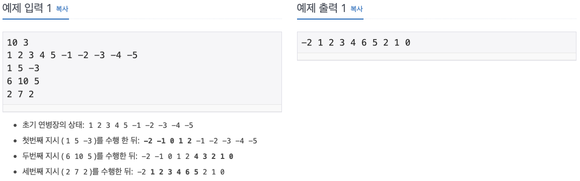 1 5 -3 이라는 입력이 있을 때 이는 (1~5)칸에 모두 -3을 하라는 의미이다.