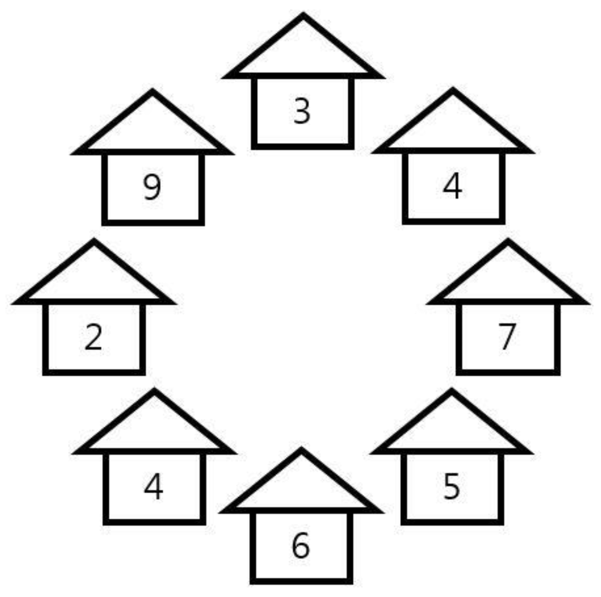 다음 그림과 같이 N개의 집이 순서대로 이웃하여 세워진 마을이 있다.
