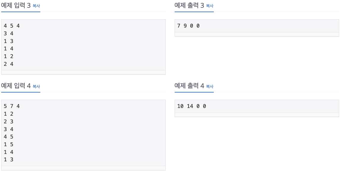 양방향 간선으로 이루어진 단순 그래프와 K가 주어졌을 때, 각 턴의 점수가 몇 점인지 구하는 프로그램을 작성하시오.
