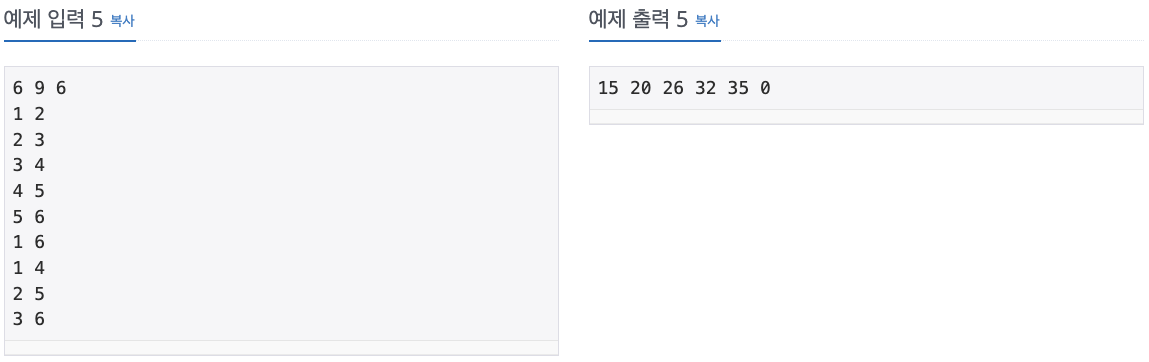 - 어떤 턴에서 MST를 만들 수 없다면, 그 턴의 점수는 0이다. 당연히 이후 모든 턴의 점수도 0점이다. 첫 턴에 MST를 만들 수 없는 경우도 있다.