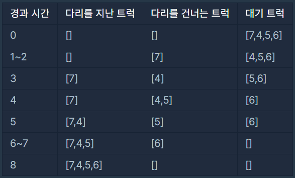 문제 출처 : https://programmers.co.kr/learn/courses/30/lessons/42583