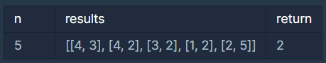 선수의 수 n, 경기 결과를 담은 2차원 배열 results가 매개변수로 주어질 때 정확하게 순위를 매길 수 있는 선수의 수를 return 하도록 solution 함수를 작성해주세요.
