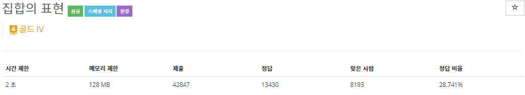 집합을 표현하는 프로그램을 작성하시오.